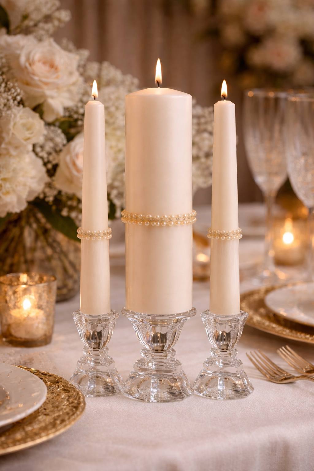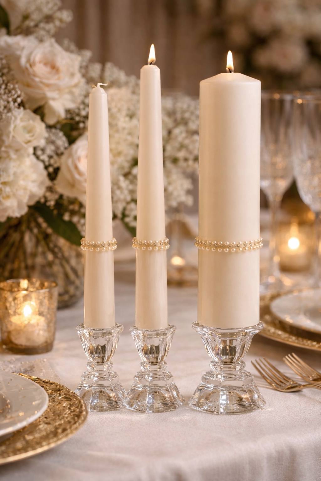 Karcsú, elefántcsont árnyalatú formája és finoman csillogó, arany tónusú gyöngy díszítése harmonikusan illeszkedik ünnepi és exkluzív enteriőrökbe egyaránt.