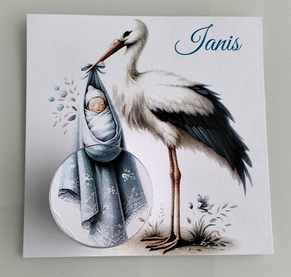 Acest cadou elegant și rafinat este conceput special **pentru botez**, fiind o amintire deosebită a unei zile cu adevărat importante. Designul său delicat ilustrează un cocor care aduce cu grijă un nou-născut învelit într-un săculeț albastru, simbolizând sosirea unui suflet pur în familie.