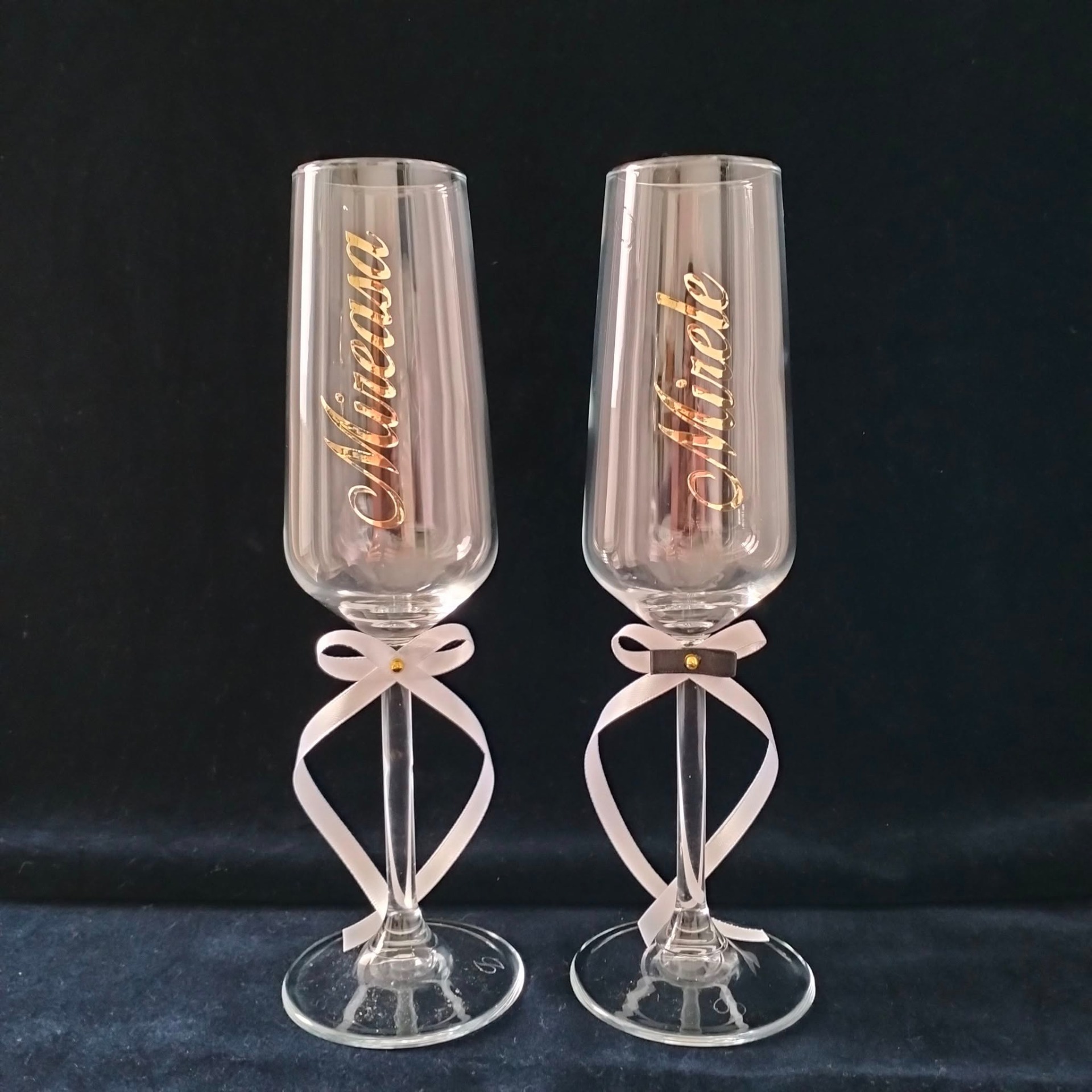 Descoperă pahare de șampanie din cristal personalizate perfecte pentru miri.