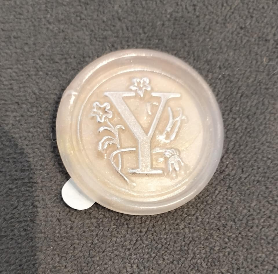 Elegant "Y" monogram self-adhesive wax seal, perfect for invitations, letters, or gift packaging.
