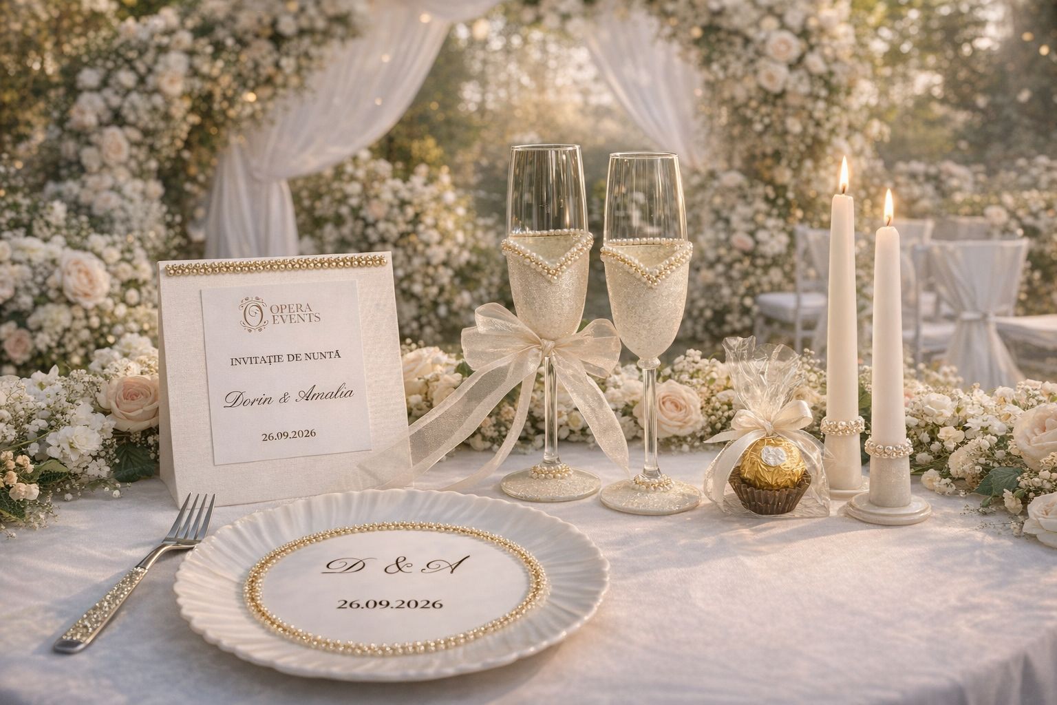 Set elegant și personalizat pentru nuntă, conceput pentru a completa ceremonia într-un mod rafinat. Cutia de culoare crem este decorată cu text și fundă bordo, oferind un aspect curat și sofisticat. Setul include elemente decorative și practice, utile invitaților pe parcursul evenimentului. Conținutul setului: - evantai personalizat - șervețel - orez - balonaș pentru săpun O alegere inspirată pentru nunți elegante, unde fiecare detaliu contează.